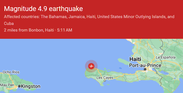 Earthquake, magnitude 4.9 strikes southern Haiti