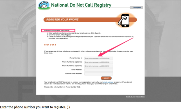 visit donotcall.gov and click the "Register Your Phone" button.