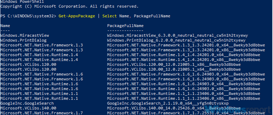 example. The Package name for this application would be:ZuneVideo_10.18102.12011.0_x64__8wekyb3d8bbwe
