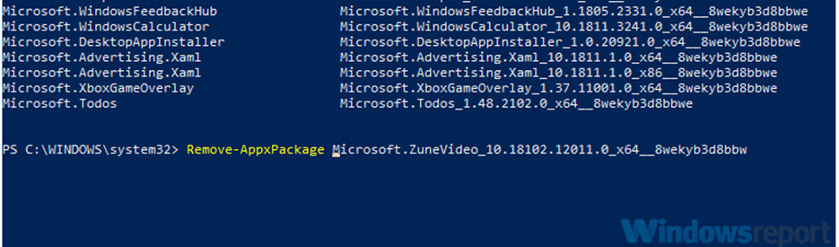 copy its Package name. Let’s say we want to remove ZuneVideo, for